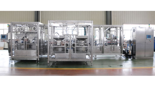 Линия производства иммет малький объём,высокую производительность,и высокий процент сдавших тестирование, в основном предназначается для производства прераратов, упакованных большими мягкими инфузионными мешками из неполихлорвиниловой плёки, способна автоматически выполнять такие процентуры,как открывать плёнки,печатать,распечатать серийные номера,изготовлять мешки,заполнять,автоматически установлять крышки,сверить для закатывания,расстановлять и выпускать мешков,и т.д.