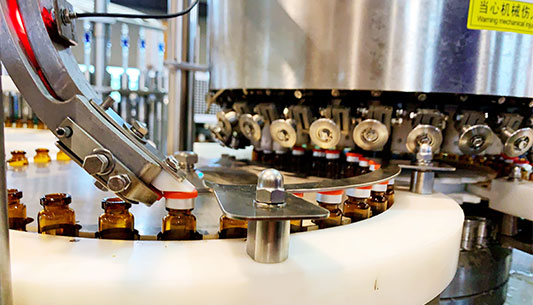 5.夾瓶機械手無需伸縮,可實現(xiàn)5-20ml口服液瓶順利翻轉,大大延長軸承壽命,減少設備噪音和碎瓶率,提高設備穩(wěn)定性。