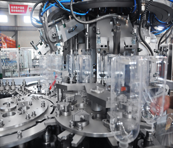 1,瓶胚在加熱、傳送、吹制過程中不離開夾具,且無翻轉(zhuǎn)動作,運動速度均勻,無突變,瓶胚在機器動作過程中定位準(zhǔn)確、傳送穩(wěn)定,吹制出來的瓶子厚薄均勻,滅菌后極少變形。