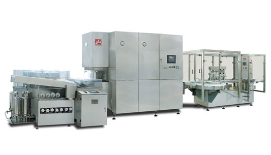本聯(lián)動機組由QCK系列立式超聲波洗瓶機、ASMR系列滅菌干燥劑、KGF系列型灌裝加塞機、KZG系列軋蓋機四臺單機組成;主要用于制藥廠抗生素瓶水針劑和凍干粉針劑的生產(chǎn)。每臺可單機使用,也可聯(lián)動生產(chǎn)。