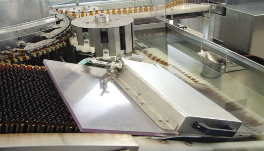該線由QCK80型立式超聲波洗瓶機、ASMZ620/42型遠紅外滅菌干燥機、DGF16/24型口服液灌裝軋蓋機三臺單機組成,分為清洗、干燥滅菌和灌裝封口三個工作區(qū),全線可聯(lián)動生產,也可單機使用。可完成淋水、超聲波清洗、機械手夾瓶、翻轉、沖水、沖氣、預熱、烘干滅菌、冷卻、灌裝、理蓋、戴蓋、軋蓋等工序。